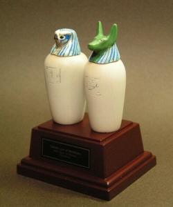 ちなみに、残る二つは人間(イシス)と狒狒(ネフティス)をかたどった壷で、それぞれ肝臓と肺が収められていたとか。